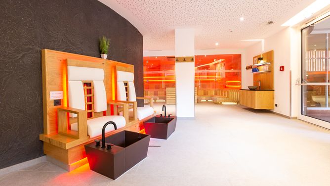 Skibussen stoppen direct voor de accommodatie.InrichtingTot de faciliteiten van het mooi ingerichte hotel behoren een receptie, Wi-Fi, recreatieruimte, lift, eetzaal, hotelrestaurant, koffiehuis en hotelbar. Ter plaatse zijn er een parkeerplaats en een parkeergarage (tegen betaling) - op basis van beschikbaarheid.WellnessIn het ca. 350 m² grote wellnessgedeelte vind je een Finse sauna, een bio-sauna en een stoombad. Je kunt je ook ontspannen in de ontspanningsruimte.
