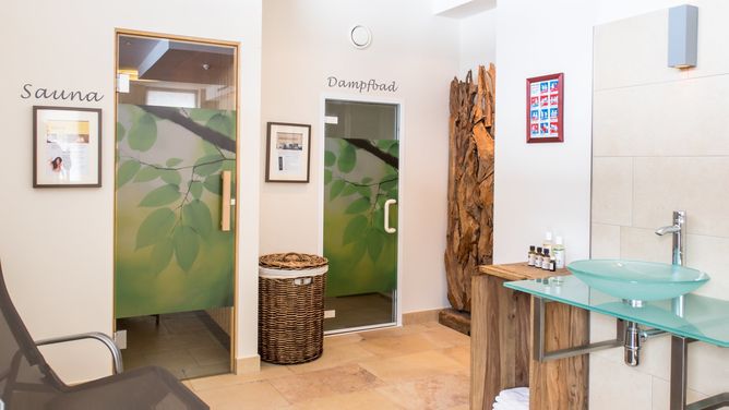 Het wellnessgedeelte van ongeveer 100 m² met Finse sauna, stoombad, infraroodcabine, ontspanningsruimte en whirlpool staat gratis tot je beschikking.