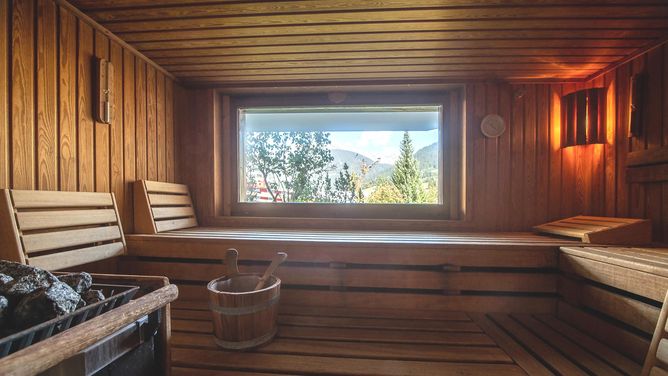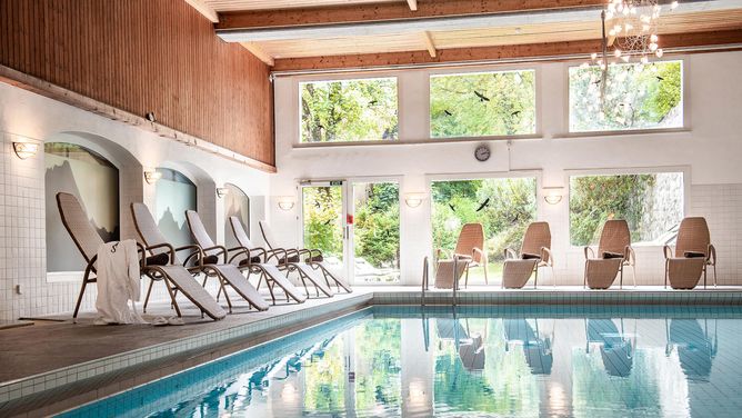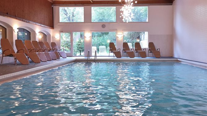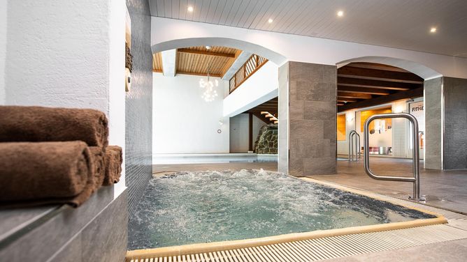 Het wellness- en zwemgedeelte (ca. 600 m²) biedt een zwembad, whirlpool, sauna en een rustruimte.
