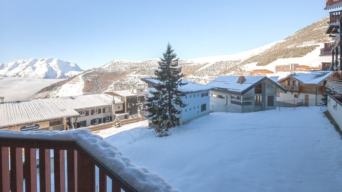 De met hout beklede Résidence L'Ours Blanc ligt in het hartje van Alpe d'Huez en biedt een fantastisch uitzicht op het dal oftewel het Oisans massief.