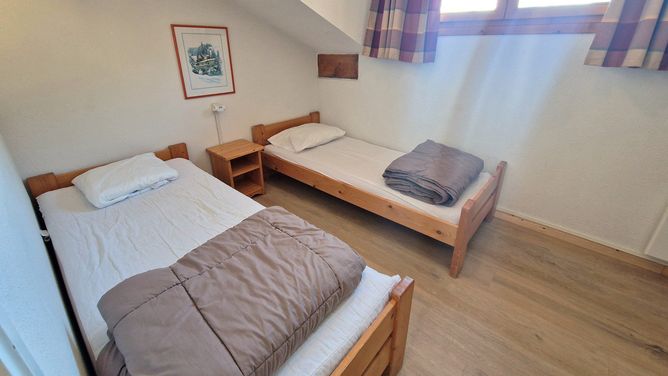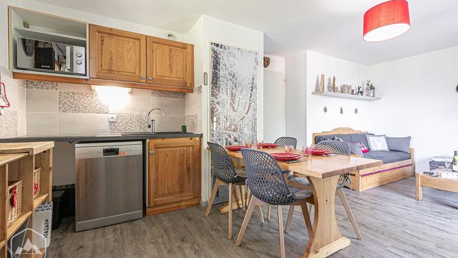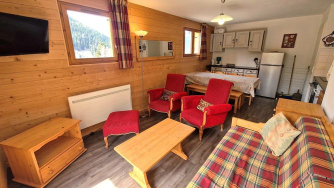 De met hout beklede Chalets d'Arrondaz B bestaan uit meerdere gebouwen en liggen deels direct aan de piste en deels tot op ca.