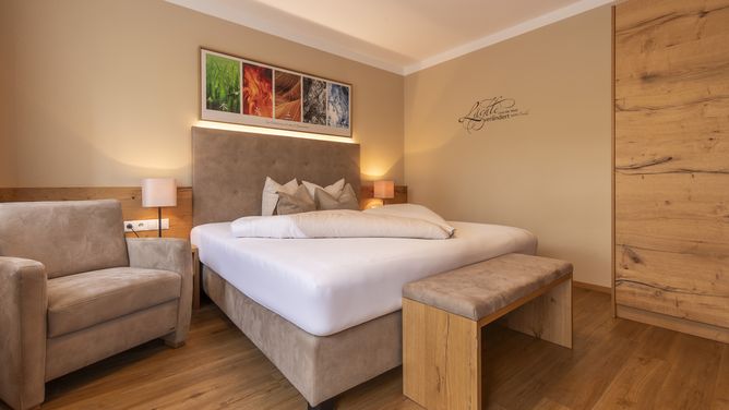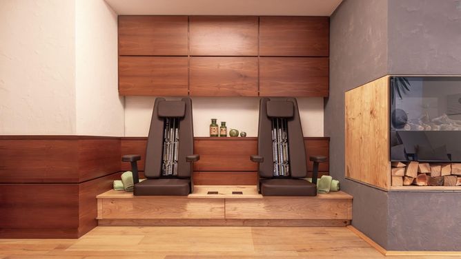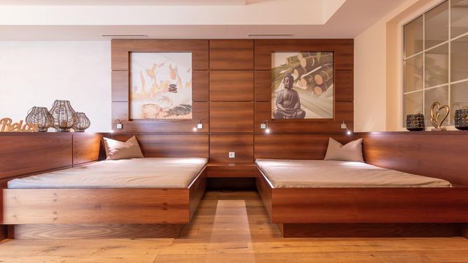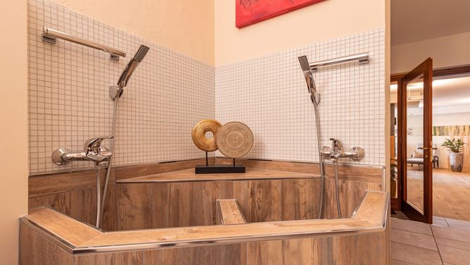 160 m² grote wellnessgedeelte met kruidenstoombad, Finse sauna, biosauna en rustruimte. Massages of beautybehandelingen kun je in het zusterhotel DreiSonnen tegen betaling bijboeken (op aanvraag)..