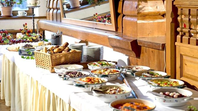 Massages kunnen tegen betaling worden bijgeboekt. Ter plaatse staan (in bruikleen) een badjas (tegen betaling) en saunahanddoeken ter beschikking.KinderenKinderbedden staan tegen betaling ter beschikking, kinderstoelen zijn inclusief (op aanvraag/op basis van beschikbaarheid).VerzorgingDe maaltijden bij de boeking van kamers met halfpension omvat een uitgebreid ontbijtbuffet. ´s Avonds kun je gebruikmaken van een 3-gangenkeuzemenu met een saladebuffet. Met Kerst wordt een kerstmenu (24.12.) geserveerd en op oudejaarsavond is er een oudejaarsmenu.
