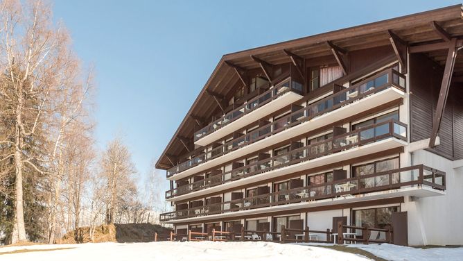 De gezellig ingerichte accommodatie Le Mont d'Arbois is verdeeld over twee gebouwen, midden in een groot park en biedt een prachtig uitzicht op de omliggende bergwereld.