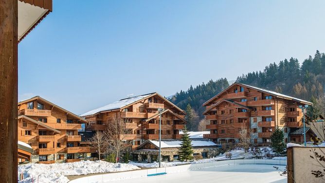 De in traditionele stijl ingerichte Résidence Les Fermes du Soleil is in het centrum van Les Carroz d'Arâches (ca.