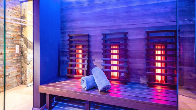 Het wellnessgedeelte (17 - 22 uur, openingstijden onder voorbehoud) met sauna, Finse sauna, infraroodcabine en ontspanningsruimte heeft een oppervlakte van ca. 70 m² en staat u gratis ter beschikking.