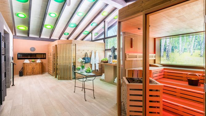 Het comfortabele en ruime wellnessgedeelte van ca. 2.000 m² (openingstijden zie beschrijving) beschikt over een binnenzwembad, stoombad, infraroodsauna, Finse sauna, biosauna, whirlpool en een ontspanningsruimte. Een fitnessruimte met cardio- en fitnessapparatuur kan ook gratis worden gebruikt. De zonnebank, het schoonheidscentrum en massages zijn beschikbaar tegen betaling (voor openingstijden, zie informatie ter plaatse).