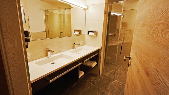 Het verzorgde hotel bestaat uit een hoofd- en een bijgebouw, die met elkaar zijn verbonden en beschikt over een ontvangstgedeelte met receptie, liften, Wi-Fi, à-la-carte-restaurant, ontbijtzaal, Stüberl, hotelbar, laadpaal voor elektrische auto's en skiruimte skischoenendroger. Parkeerplaatsen zijn op basis van beschikbaarheid gratis aanwezig.