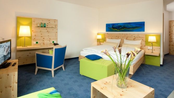 Het ca. 500 m² grote wellnessgedeelte met Finse sauna, biosauna, zoutwaterstoombad, infraroodcabine en rustruimte mag je gratis gebruiken. Zonnebank, massages en wellnessbehandelingen kun je tegen betaling boeken. Bovendien kun je gebruikmaken van de ongeveer 1.200 m² grote thermen met twee binnenzwembaden en één buitenzwembad, een ca.
