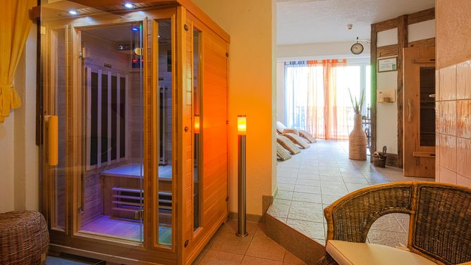 Het ca. 70 m² grote wellnessgedeelte (zie openingstijden onder ter plaatse) met Finse sauna, stoombad, infraroodcabine en terras kun je gratis gebruiken. Tegen betaling kunnen ter plaatse massages worden bijgeboekt.