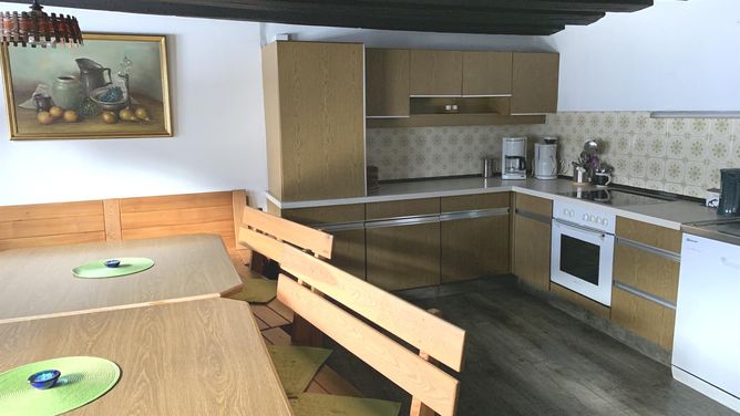 Het vakantiehuis is een pas gerenoveerde boerderij en biedt plaats aan maximaal 19 personen. Het is uitgerust met een grote woonkeuken met elektrisch fornuis, oven, open haard (incl. hout), koelkast, vriesvak, vaatwasser, koffiezetapparaat en waterkoker. Bovendien biedt de Bauernstube met grote zithoeken en sat-tv voldoende ruimte voor groepen en families.