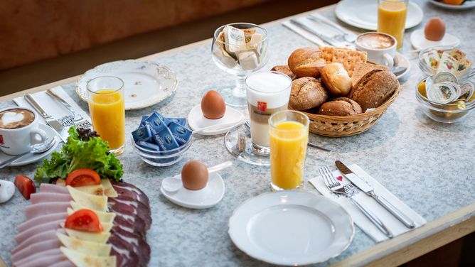 VerzorgingDe Verzorging bij het boeken van kamers met halfpension is inclusief een uitgebreid ontbijtbuffet met mueslihoek, brood, vleeswaren, kaas en eiergerechten.