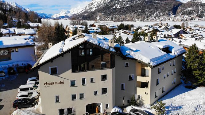Het idyllische 3-sterren Hotel Chesa Surlej ligt direct naast de skipiste, op slechts enkele meters (ca.