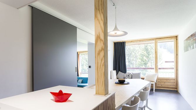 Hier liggen verschillende winkels en restaurants. Bij goede sneeuwomstandigheden is de afdaling op ski's tot aan de accommodatie mogelijk.