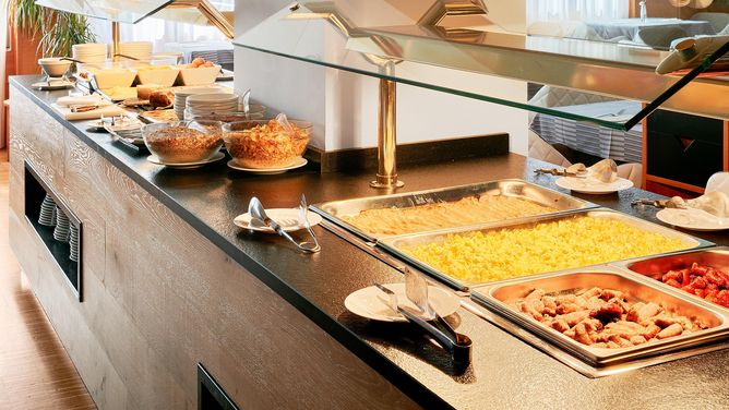 100 m.InrichtingTot de faciliteiten van het landstypische hotel behoren een receptie (dagelijks van 00.00 - 23.59 uur, wijzigingen voorbehouden) met kluis, lobby, Wi-Fi in het gehele hotelcomplex, bagageruimte, lift, eetzaal, hotelrestaurant, koffiehuis en hotelbar. De wintersportuitrusting kun je in een skikelder opbergen. Ter plaatse is er een parkeerplaats (tegen betaling) - op basis van beschikbaarheid.KinderenKinderstoelen zijn inclusief (op aanvraag/op basis van beschikbaarheid).VerzorgingDe maaltijdsvoorziening bij de boeking van kamers met overnachting/ontbijt omvat een buffet voor het ontbijt..
