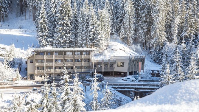900 m hoogte in de Val d'Ega, op ca. 3,5 km van het centrum van Eggen. Een skibushalte ligt direct naast het hotel, zodat je het 6 km verderop gelegen skigebied Val di Fiemme-Obereggen eenvoudig bereikt. De toegang tot de langlaufloipe ligt ca.