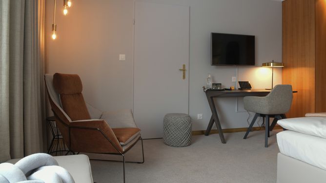 350 m van het centrum van Davos. De toegang tot de Parsennbahn is na ongeveer 1 km mogelijk. De Schatzalpbahn bereik je na ca. 1,7 km (niet in de skipas inbegrepen).