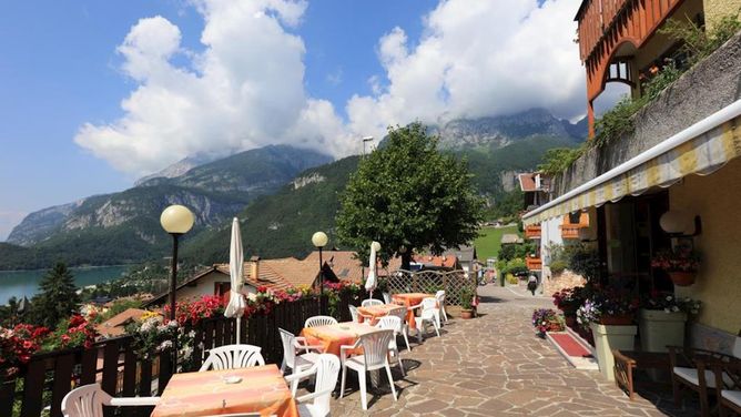 Het gezellige 3-sterrenhotel Aurora ligt in Molveno en biedt een prachtig uitzicht op het meer.