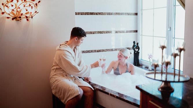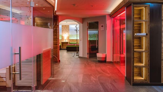 Verder is er het almsauna-landschap met Finse sauna, biosauna, kruidenstoombad en zoutstoombad, waarin je je heerlijk kunt ontspannen. Tenslotte is er nog een binnenzwembad met whirlpool, infraroodcabine en een solarium (tegen betaling). Massages en andere cosmetische behandelingen zijn tegen betaling mogelijk.