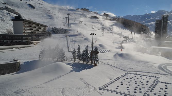 De accommodatie ligt aan de voet van de pistes van het skigebied Les Menuires - Saint Martin en de skilift bevindt zich op ongeveer 50 meter afstand. Er zijn winkels en restaurants in de directe omgeving, evenals een bushalte..