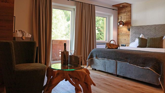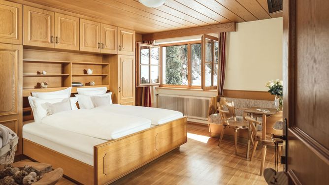 Een gratis skibus (zie dienstregeling ter plaatse) brengt je daar elke dag naartoe. Een winterwandelroute loopt direct langs het hotel..