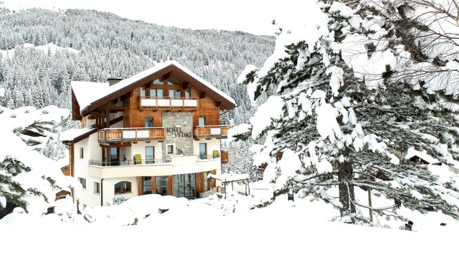 Het comfortabele 4-sterren Hotel Vedig ligt aan de voet van het skigebied Santa Caterina, dus als er genoeg sneeuw ligt, kun je tot aan de accommodatie skiën.
