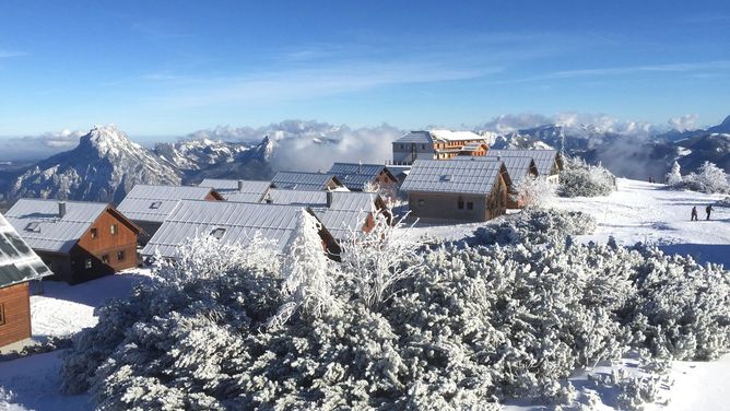 Het charmante Hüttenresort Feuerkogel ligt midden in het skigebied op 1.625 m hoogte en op ca.