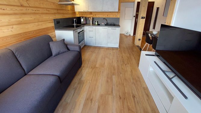 De toegang tot het skigebied via de Belle Étoile skilift ligt op ca. 200 m afstand.