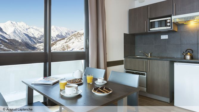 De moderne 4-sterren Résidence Crêt Voland ligt in het centrum van Les Menuires.