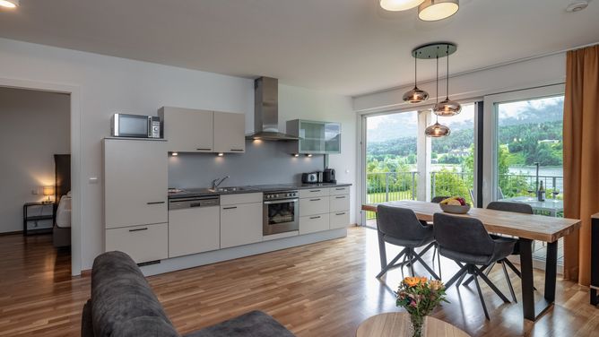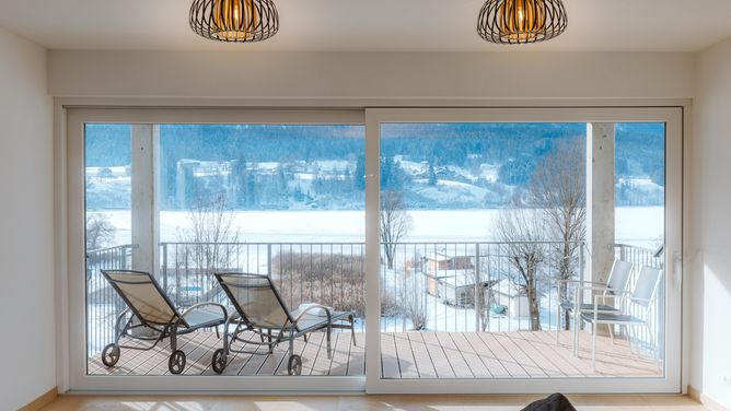 De moderne 4-sterrenappartementen Schluga liggen direct aan de Pressegersee, op ca.