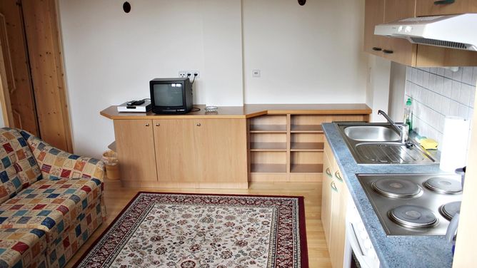 Er is ook een saunagedeelte met zonnebank en een kleine fitnessruimte.VerzorgingZonder verzorging. Een ontbijtservice kan op aanvraag worden bijgeboekt (zie informatie ter plaatse).Belangrijke opmerkingenVoor kinderen t/m 5 jaar wordt geen skipasvoucher verstuurd. Zij reizen gratis onder begeleiding van een volwassene, mits ze op schoot worden gedragen en geen eigen zitje of liftstang nodig hebben.