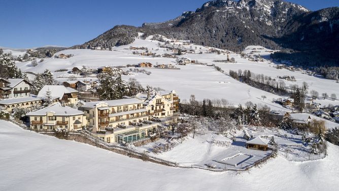 De kabelbaan Seiser Alm (toegang tot het skigebied) ligt op ca. 2 km afstand.