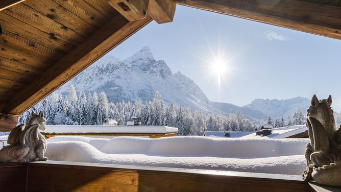 700 m van het centrum van Ehrwald op een hoogte van ca. 994 m. De toegang tot het skigebied is via de op ca. 1,2 km afstand gelegen lift Ehrwalder Wettersteinbahnen of de op ca.