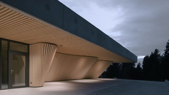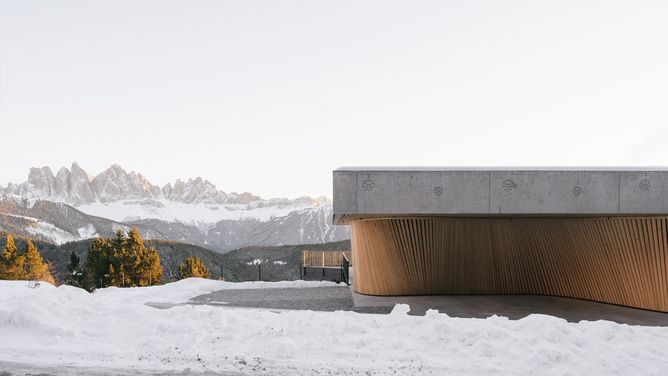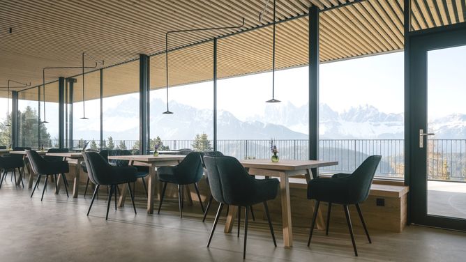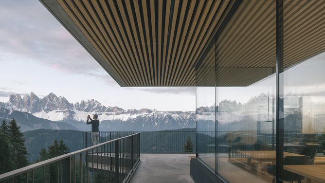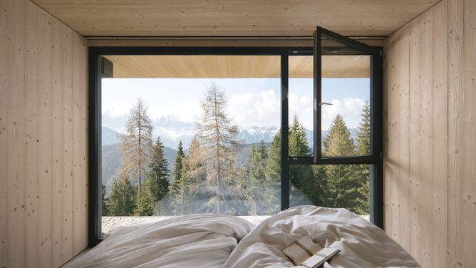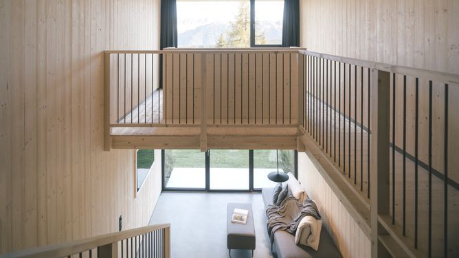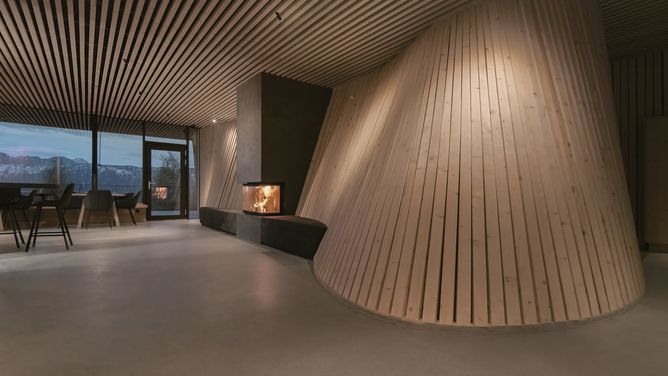De moderne accommodatie is ontworpen door de Zuid-Tiroolse architect Martin Gruber, en ontving de BIG SEE Architecture Award 2024..