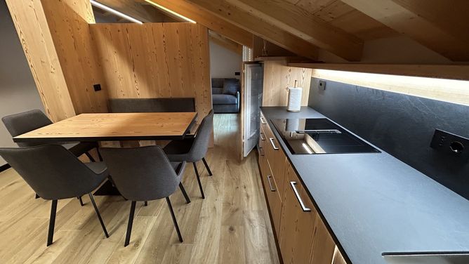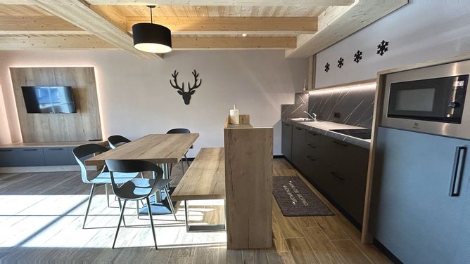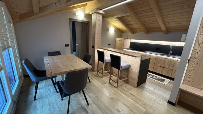 Het onlangs gerenoveerde Chalet Domin ligt op ongeveer 800 m van de Cassana lift, tegenover de pistes van het Carosello skigebied.