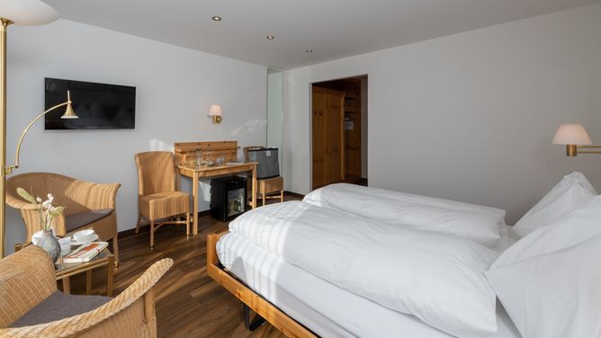 150 m. Naar het station wordt een shuttleservice aangeboden. Verder rijden shuttles naar de lift en naar het skigebied Hörnli und Weisshorn.InrichtingTot de faciliteiten van het comfortabele hotel behoren een receptie (07.30 - 21.00 uur, wijzigingen voorbehouden), Wi-Fi, bibliotheek, recreatieruimte, lift, ontbijtruimte, hotelrestaurant, hotelbar en wijnkelder. De wintersportuitrusting kun je in een skikelder opbergen.