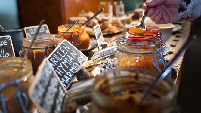 Het restaurant is bekroond met een toque van Gault Milau. Vegetarische gerechten zijn beschikbaar, lactose-/glutenvrije alternatieven kunnen worden aangevraagd. Er worden producten van de eigen boerderij en uit de regio aangeboden..