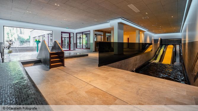 40 m² groot binnenzwembad met babybadje met glijbaan. Schoonheidsbehandelingen en massages kunnen tegen betaling worden bijgeboekt. Ter plaatse staan (in bruikleen) een badjas en saunahanddoeken ter beschikking. Wijzigingen van de openingsuren en geldigheidsduur onder voorbehoud.