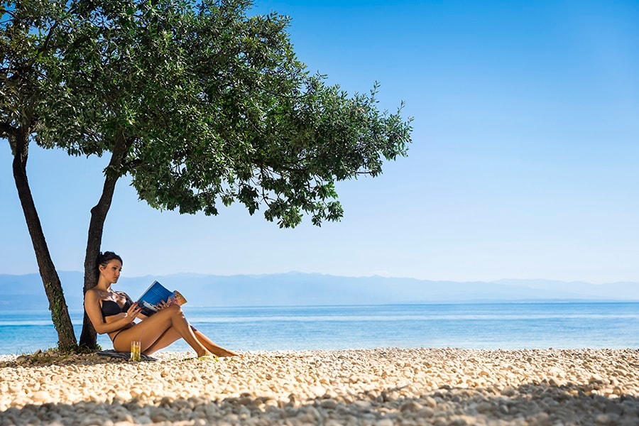 Het kiezelstrand is bereikbaar via een tunneltje onder de kustweg of via het zebrapad voor de camping. Restaurant behorende bij de camping, winkel direct naast de camping.