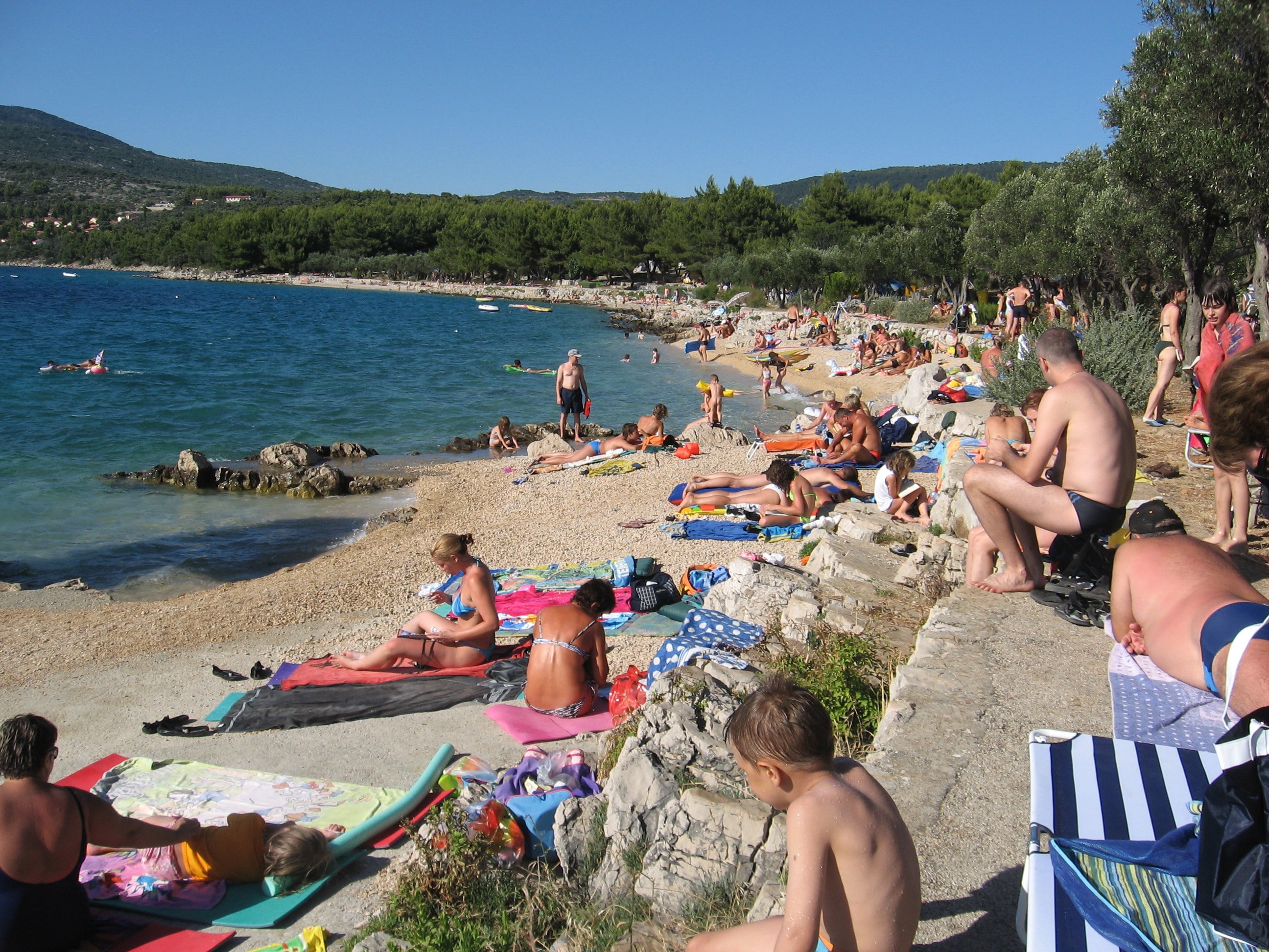 Mooie grote terrassencamping, gelegen in bos en een olijfboomgaard, direct aan zee en op wandelafstand van het centrum van Cres (20 min.).