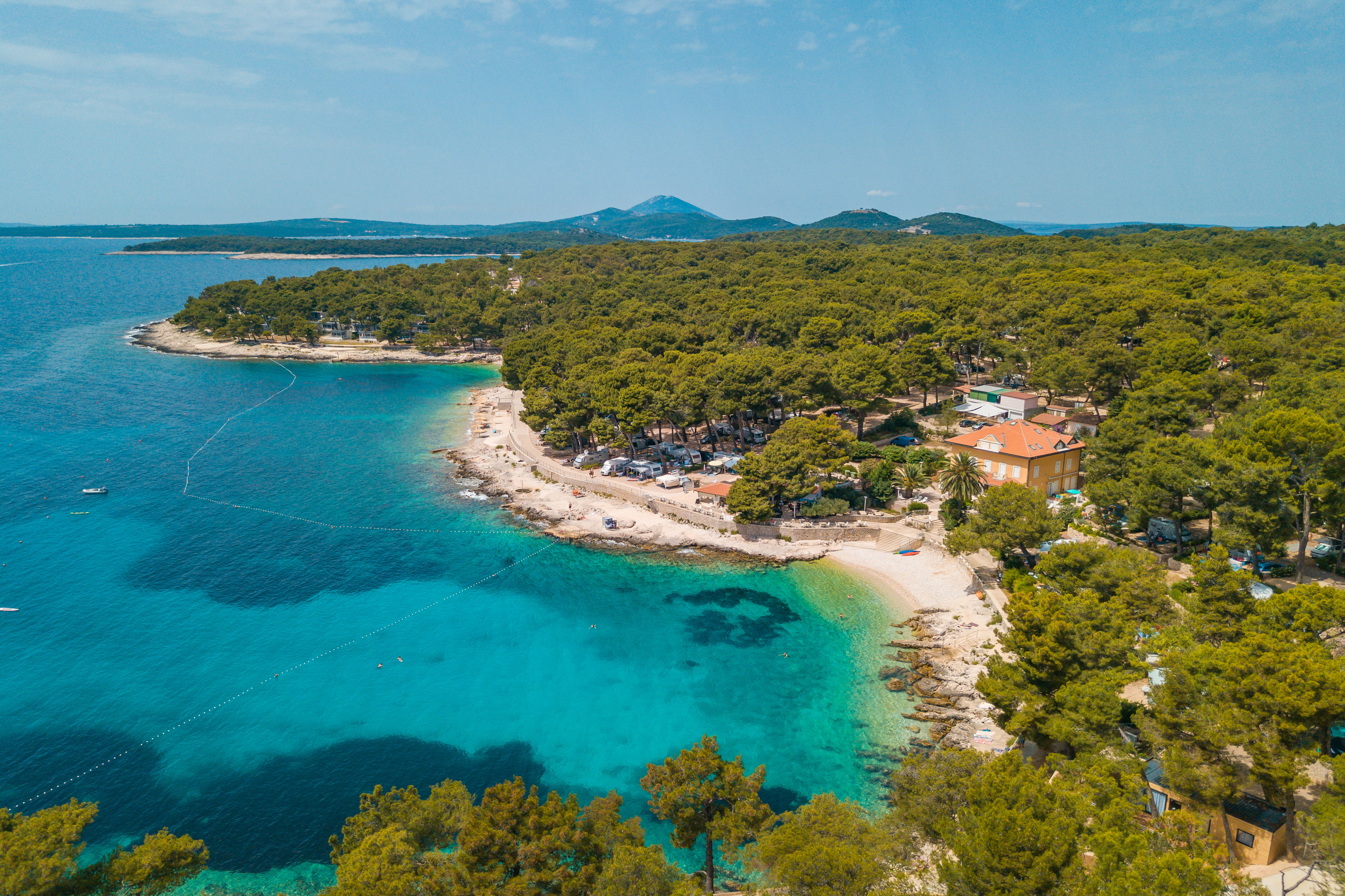 Grote camping in schaduwrijk pijnbomenbos, twee kilometer buiten Mali Losinj met zijn grote, gezellige jachthaven.