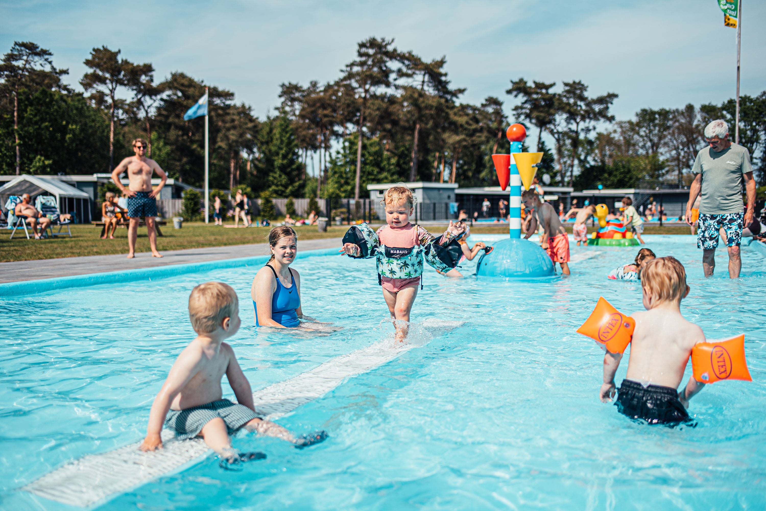 Groot verwarmd buitenbad met veel sportvoorzieningen. Mooi aangelegde visvijver op de camping.