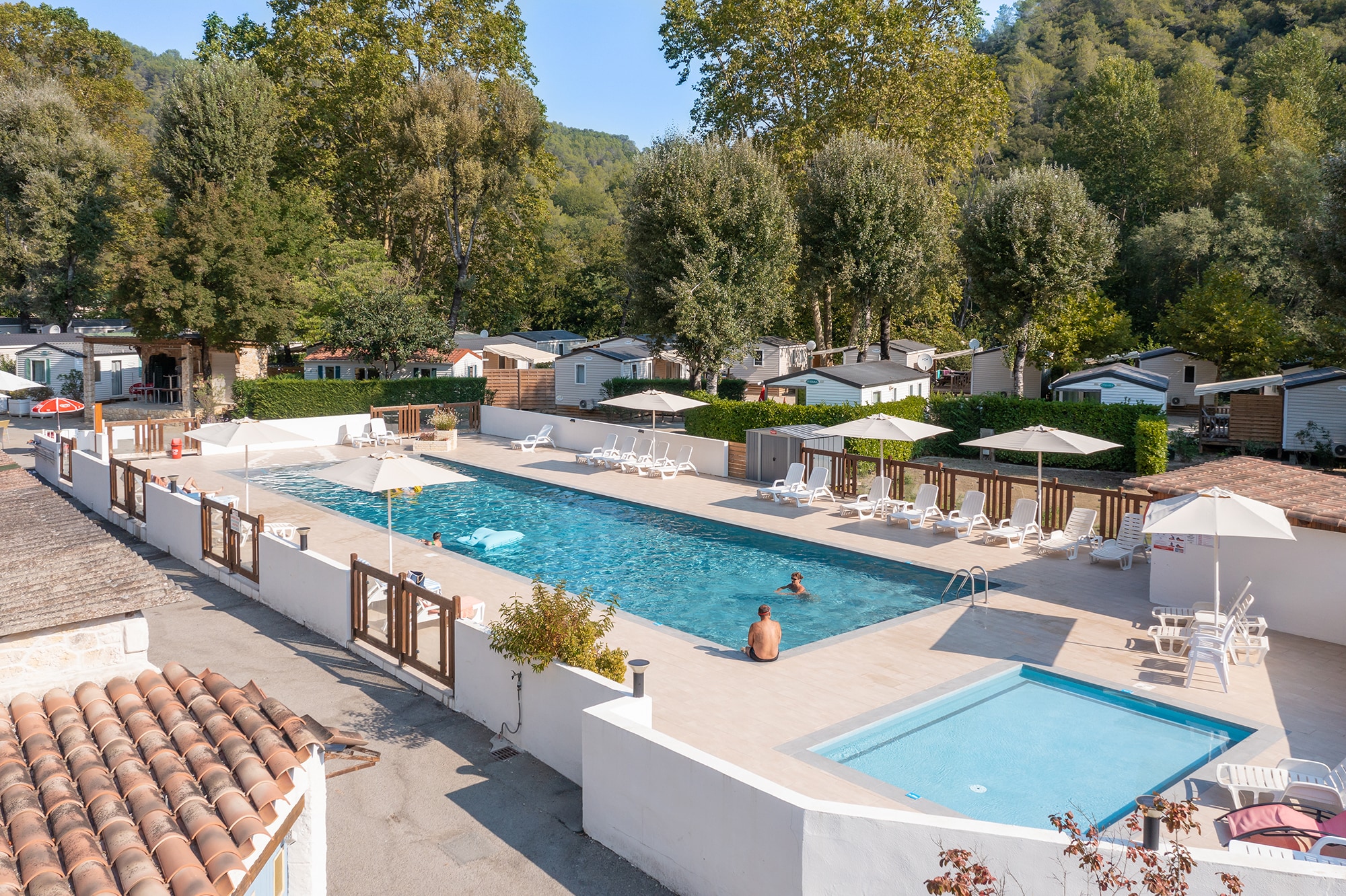 Paul de Vence. Het riviertje, dat de camping begrenst, brengt afleiding voor watersporters en hengelaars.