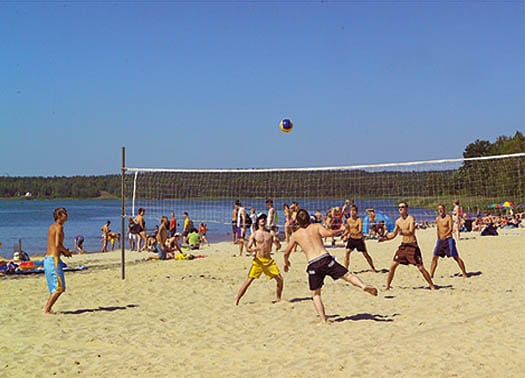 Familiecamping in afgelegen stil natuurgebied aan groot meer met royaal zandstrand, FKK-strand en hondenstrand.