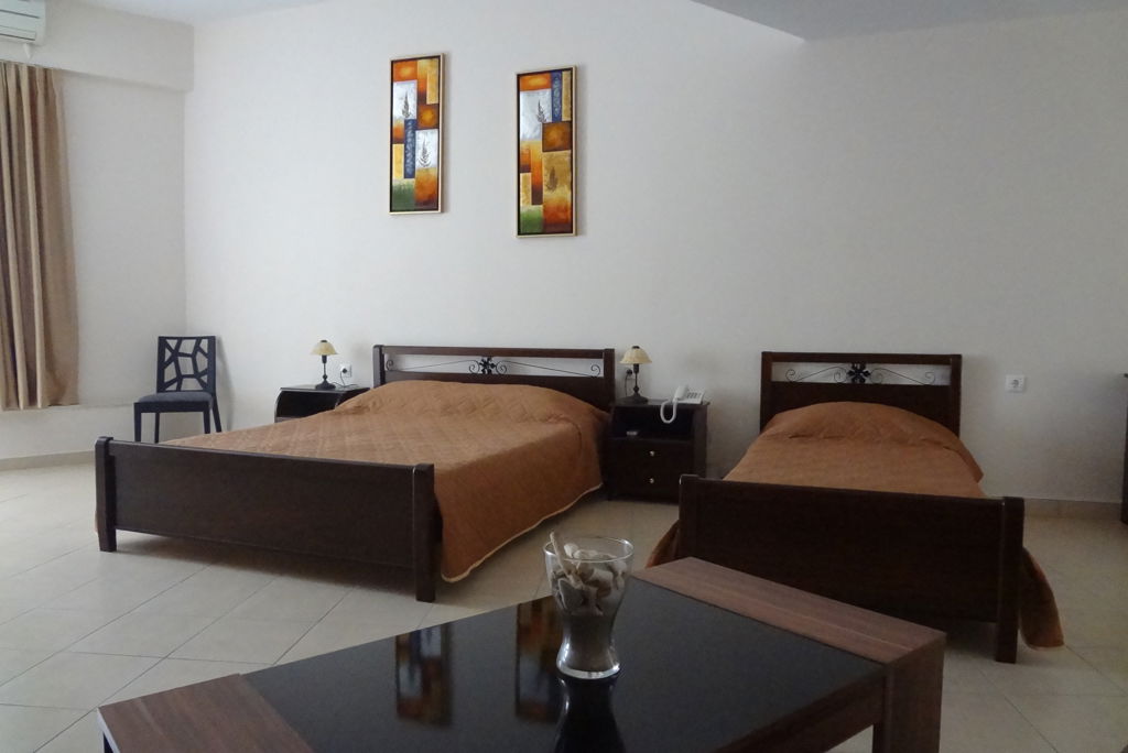 300 meter * Dichtstbijzijnde winkels en bars op ca. 150 meter * Bushalte op ca. 50 meter * Dimosari watervallen op ca. 8 kilometer Faciliteiten * 3 gebouwen met maximaal 2 verdiepingen * 60 kamers * 24-uursreceptie * Bagageruimte * Lobby * Tuin * Wifi in de lobby * Doktersservice* op aanvraag * Parkeergelegenheid bij het hotel (op basis van beschikbaarheid) *Tegen betaling Restaurants & bars * Avra Taverna met traditionele Griekse homemade à-la-cartegerechten * 1 bar Hotelkamers * Standaardkamer Tuinzicht (2-3 personen) * Ca.