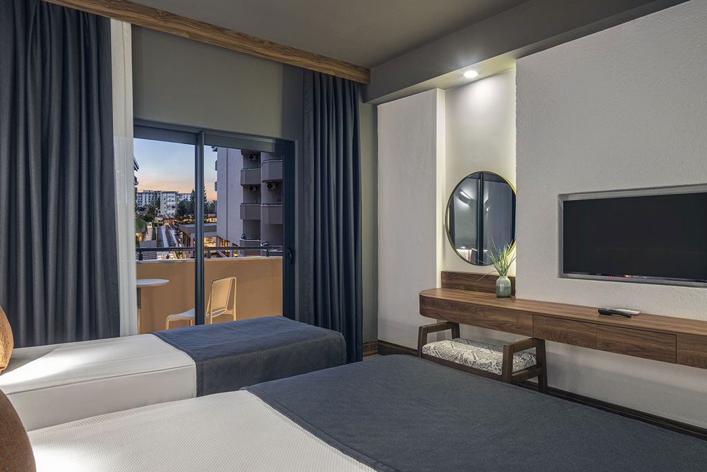 18-24 m² * Telefoon* * Airconditioning * Televisie * Minibar (dagelijks gevuld met water) * Kluisje * Wifi * Douche * Toilet * Föhn * Balkon met zitje * Tegen een meerprijs boekbaar met zwembadzicht *Tegen betaling * Superiorkamer (1-4 personen) * Ca. 32-48 m² * Dezelfde faciliteiten als de standaardkamer * Tegen een meerprijs boekbaar met zwembadzicht * Deluxe kamer (1-3 personen) * Ca. 24-32 m² * Dezelfde faciliteiten als de standaardkamer * Tegen een meerprijs boekbaar met zwembadzicht Sport & Ontspanning * Fitness * Biljart* * Gameroom* * Watersporten aan het strand* * Turks bad* * Sauna* * Massages en schoonheidsbehandelingen* * 2-3 dagen per week entertainment * Tegen betaling Kinderfaciliteiten * 1 kinderzwembad * Speeltuintje Zwembaden & Strand * 1 buitenzwembad * 1 buitenzwembad met 2 glijbanen (op vaste tijden geopend) * Zonneterras * Privéstrand * Ligbedden, matrasjes en parasols gratis (zwembad en strand) * Gratis badhanddoekenservice * Tegen betaling Verzorging Zomer: Kaia Coracesium * Verblijf o.b.v. All Inclusive: * Ontbijt in buffetvorm (07.00-10.00 uur) * Laat ontbijt (10.00-10.30 uur) * Lunch in buffetvorm (12.30-14.00 uur) * Diner in buffetvorm (19.00-21.00 uur) * Snacks (11.00-17.00 uur) * IJs (15.30-16.30 uur) * Middernachtsnacks (23.00-06.00 uur) * Selectie van lokale (non-)alcoholische dranken en een aantal import drankjes (10.00-02.00 uur) * Tegen betaling: import drankjes en roomservice Extra informatie: Bij deze pakketreis is een huurauto inbegrepen, daarom vervalt de transfer van de luchthaven naar de accommodatie en vice versa.