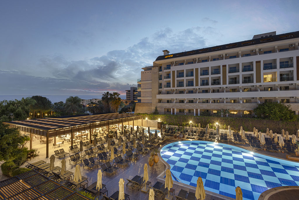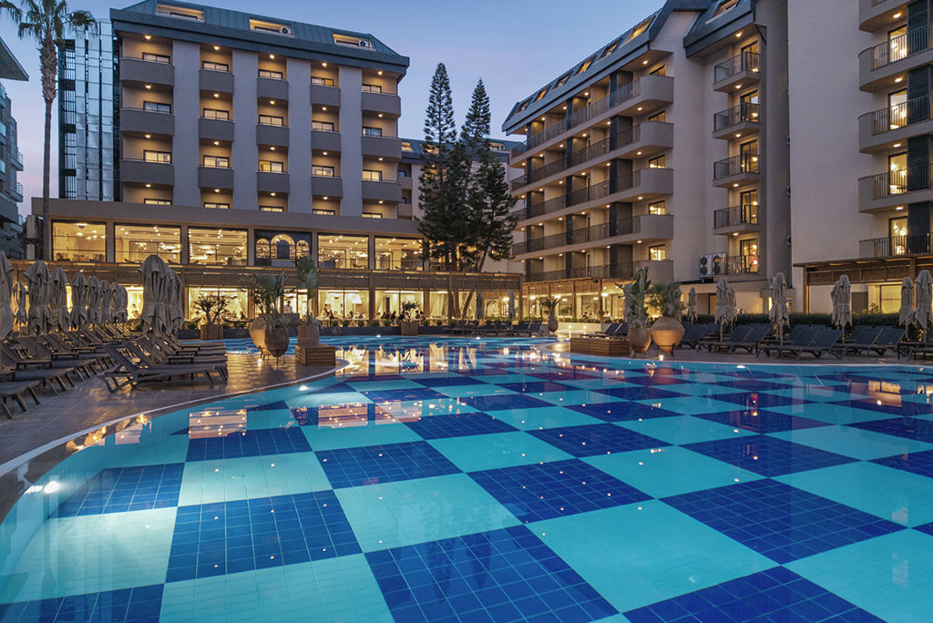 200 meter van het strand * Konakli op ca. 800 meter * Alanya op ca. 13 kilometer * Bushalte op ca. 50 meter Faciliteiten * 2 gebouwen met 6 verdiepingen * In beide gebouwen is een lift aanwezig * 327 kamers * 24-uursreceptie * Lobby * Tuin * Wifi in de lobby en op bij het zwembad * Roomservice* * Kapsalon* * Winkeltjes en minimarkt* * Wasservice* * Doktersservice* * Openbare en privé parkeerplaatsen *Tegen betaling Restaurants & bars * 1 buffetrestaurant * 3 bars Hotelkamers * Standaardkamer (1-3 personen) * Ca.