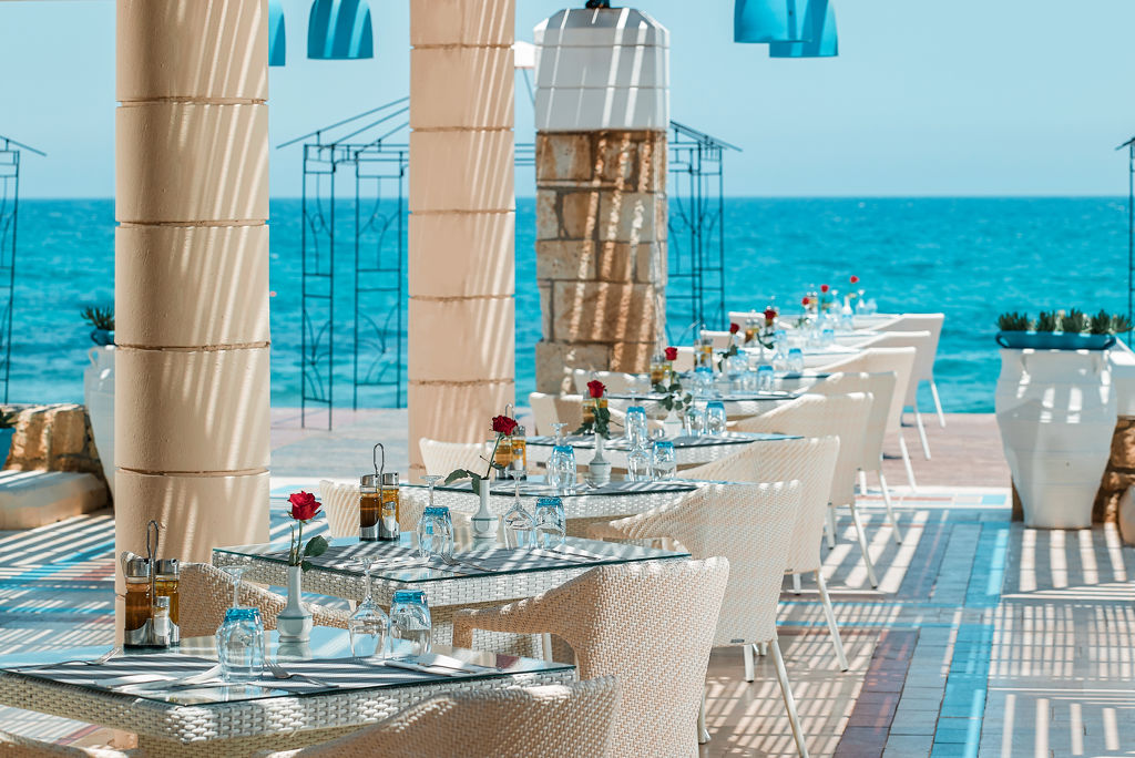 Direct naar: * Ligging () * Faciliteiten () * Restaurants & Bars () * Hotelkamers () * Sport & Ontspanning () * Kinderfaciliteiten () * Zwembaden & Strand () * Verzorging () Ligging: Mitsis Royal Mare & Thalasso Resort (voorheen Aldemar Royal Mare) * Direct aan het strand * Gelegen in Anissaras * Op ca.
