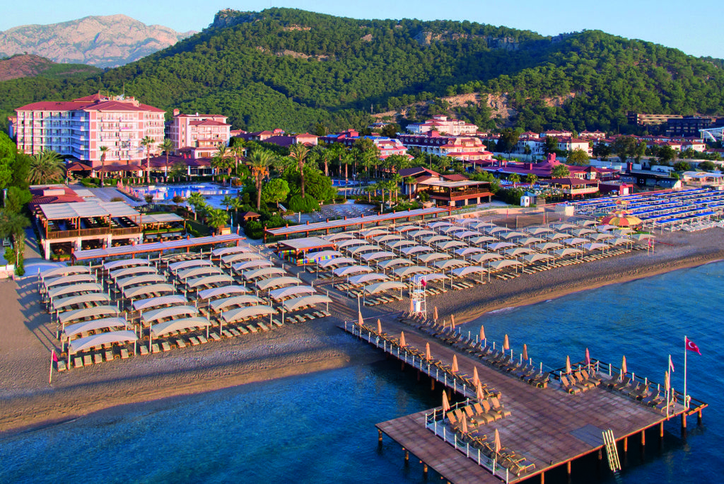 7 kilometer van Kemer * Bushalte voor het hotel * Winkeltjes op loopafstand * Bij deze reis is de transfer van de luchthaven naar het hotel en v.v. inbegrepen Faciliteiten * 5 gebouwen met 5 verdiepingen * In alle gebouwen is een lift aanwezig * 401 kamers * 24-uursreceptie * Bagageruimte * Lobby * Tuin * Gratis wifi * Kapsalon* * Winkeltjes en minimarkt* * Wasservice* * Doktersservice* * Privé parkeerterrein *Tegen betaling Restaurants & bars * 1 buffetrestaurant * 2 à-la-carterestaurants (vooraf reserveren) * 5 bars * Disco Hotelkamers * Standaardkamer Side Block (1-3 personen) * Gelegen in het bijgebouw * Ca. 22-25 m² * Telefoon* * Airconditioning * Satelliettelevisie * Minibar * Kluisje * Wifi * Douche * Toilet * Föhn * Balkon of terras met zitje * De voordeelkamer (2 personen) kan qua ligging en faciliteiten afwijken van de Standaardkamer Side Block *Tegen betaling * Standaardkamer hoofdgebouw landzicht (1-3 personen) * Ca. 22-26 m² * Gelegen in het hoofdgebouw * Dezelfde faciliteiten als de Standaardkamer Side Block * Tegen een meerprijs te boeken met zeezicht * Comfort standaardkamer (1-3 personen) * Ca.