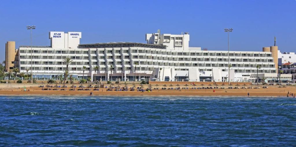 4 kilometer * Marina d'Agadir op ca. 5 kilometer Faciliteiten * 5 gebouwen met maximaal 4 verdiepingen * Meerdere liften * 328 kamers * 24-uursreceptie * Lobby * Bagageruimte * Tuin * Wifi * Roomservice* * Kapsalon* *Tegen betaling Let op: deze accommodatie is niet geschikt voor mindervaliden. Restaurants & bars * 1 buffetrestaurant * 2 à-la-carterestaurants (vooraf reserveren en mogelijk tegen betaling) * Meerdere bars Zwembaden * 3 buitenzwembaden * Zonneterras * Ligbedden en parasols gratis (zwembad en strand) * Badhanddoekenservice (tegen betaling) Hotelkamers * Standaardkamer (1-3 personen) * Ca. 22 m² * Telefoon* * Airconditioning * Televisie * Minibar* * Kluisje* * Wifi * Douche * Toilet * Föhn * Balkon of terras met zitje * Tegen een meerprijs boekbaar met tuin-, zwembad- of zeezicht *Tegen betaling Activiteiten & ontspanning * Fitness* * Aerobics * Beachvolleybal * Volleybal * Boccia * Darts * Biljart* * Tafeltennis * Tennis* * Gameroom* * Hamam* * Sauna* * Bubbelbad* * Binnenzwembad* (vanaf 16 jaar) * Massages en behandelingen* * Meerdere keren per week entertainment * Meerdere keren per week shows en livemuziek *Tegen betaling Kinderfaciliteiten * 1 kinderzwembad met glijbanen (op vaste tijden geopend) * Miniclub meerdere keren per week (4-12 jaar) * Speeltuin * Minidisco * Babybedjes (op aanvraag en op basis van beschikbaarheid) * Babysitservice op aanvraag en tegen betaling Verzorging Winter: Amadil Ocean Club * Verblijf o.b.v.